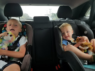 When we left Sages house for the airport. They fell asleep before we got to the stop sign. Which to be clear is on the corner of Sage's lot. I am not joking. Literally 5 seconds after we left the driveway.